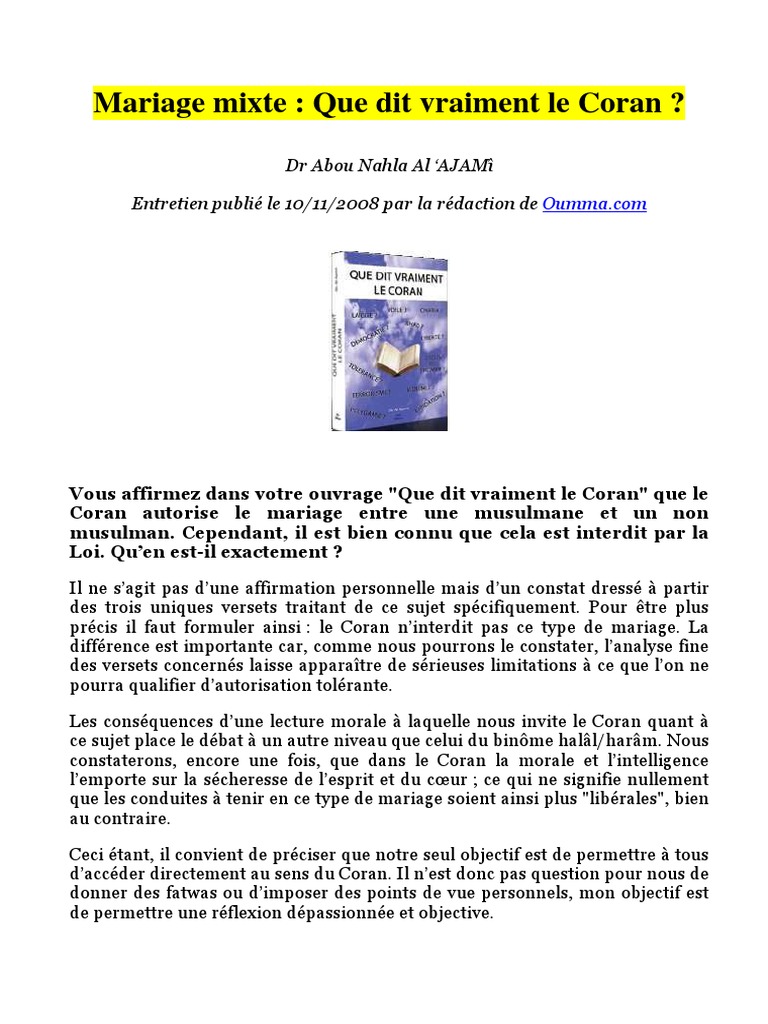 Le Mariage Mixte Al1 Coran Mariage Essai Gratuit De 30